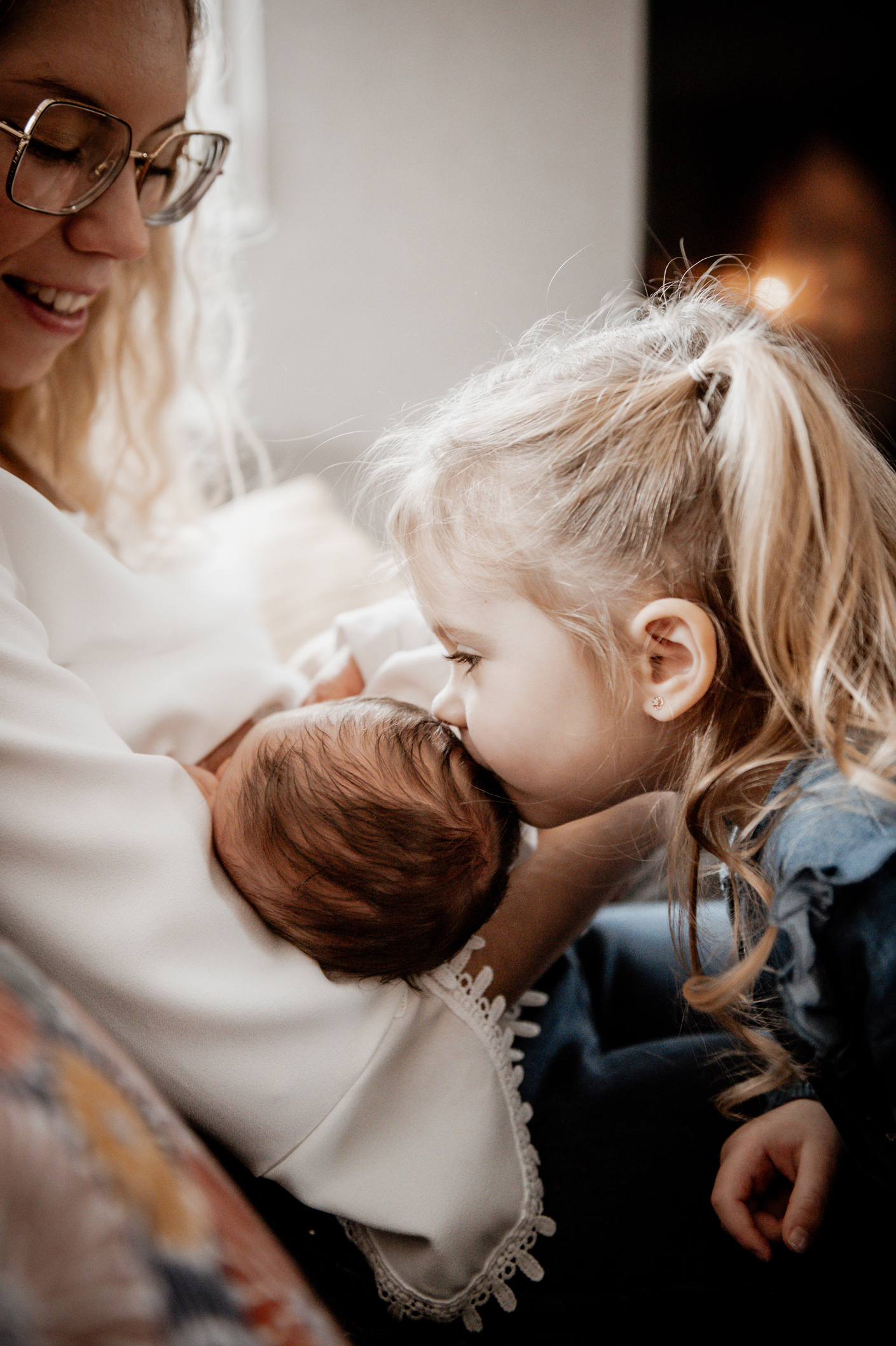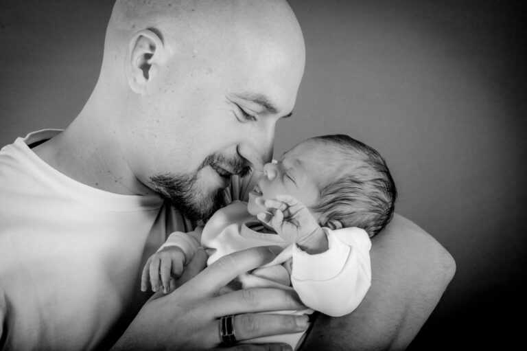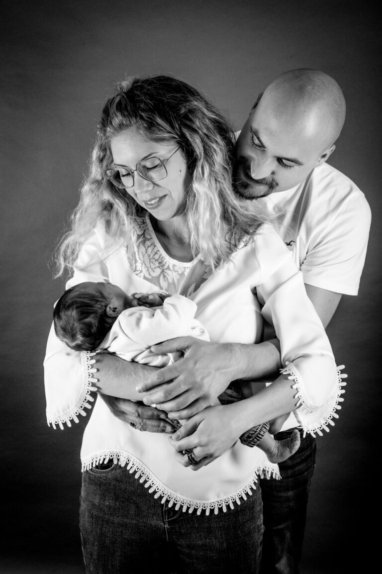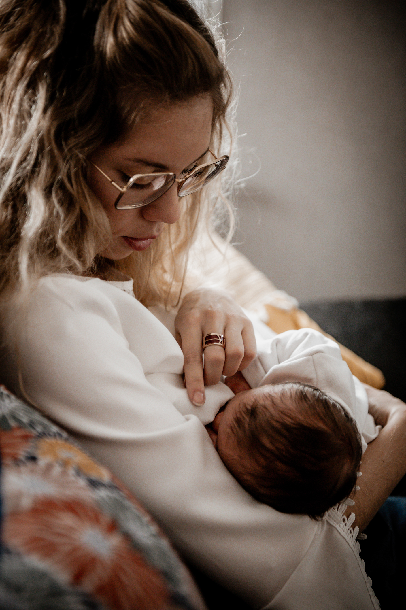 Une approche studio à domicile pour cette séance de naissance, apportant confort et familiarité à ce moment précieux, immortalisé avec tendresse